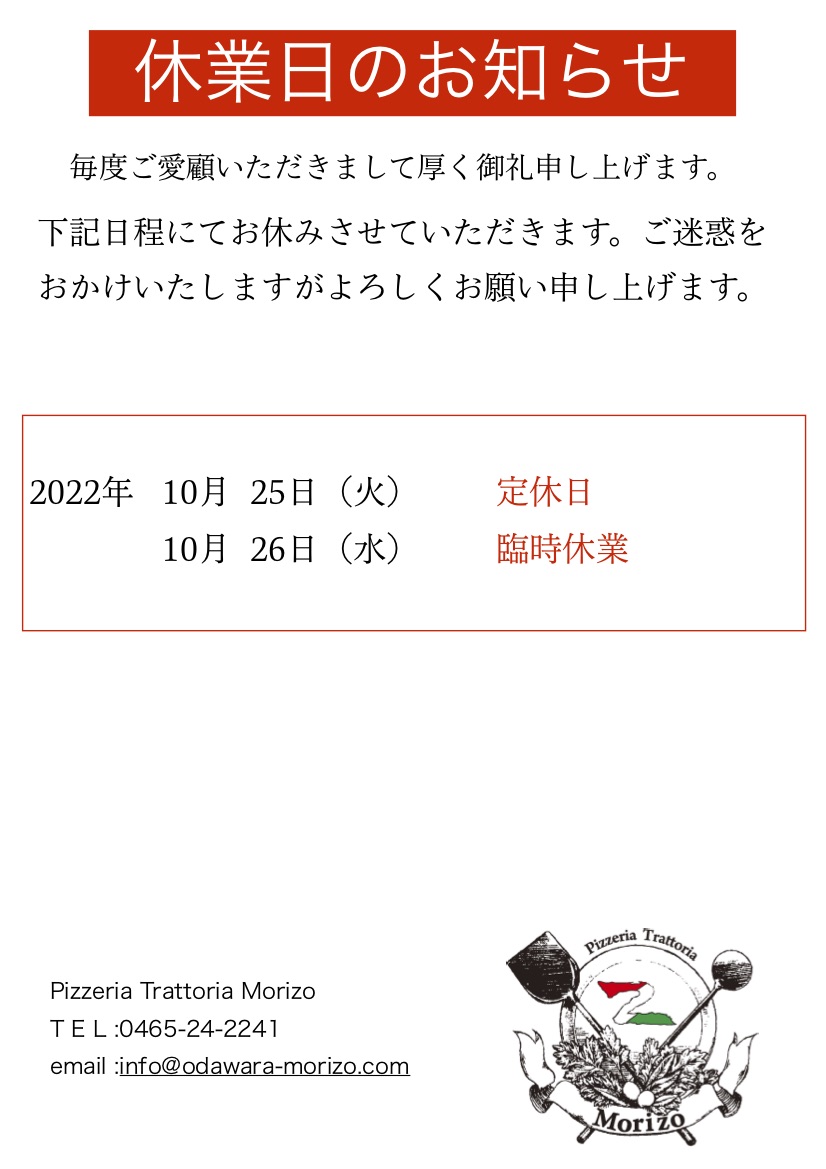 臨時休業のお知らせ
